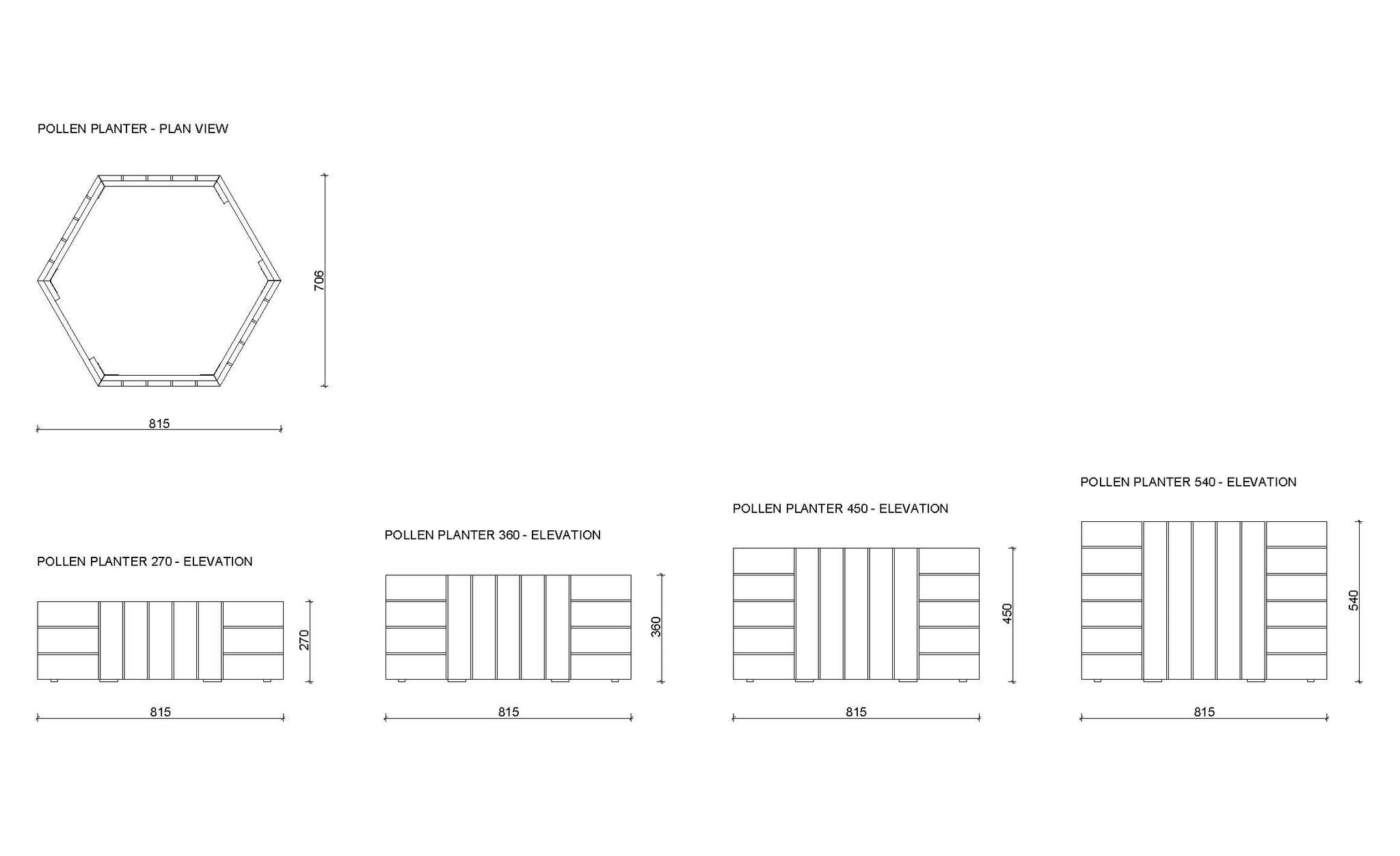 Hexagon shaped planter designed to integrate with our Tesserae Decking Tiles, and quickly create intimate garden havens. The Pollen Planter has the same footprint as 3 of the decking tiles.