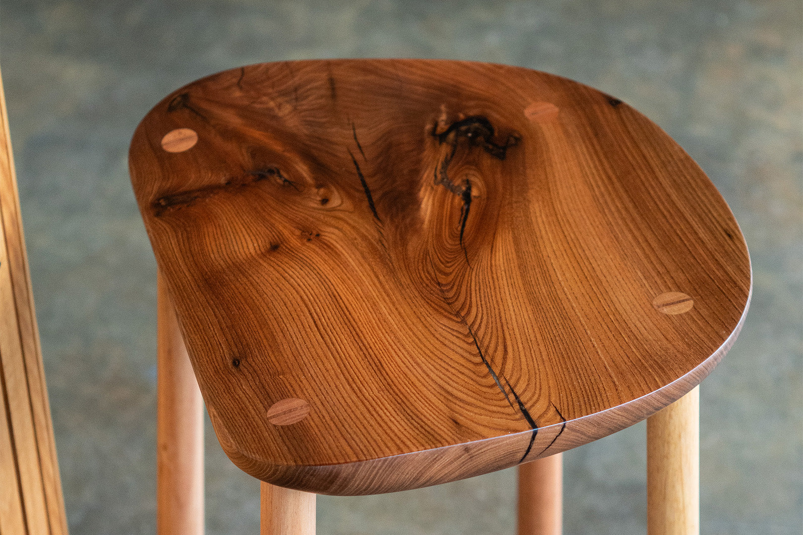Stools featuring a Canberra Local Ash frame paired with an Elm seat, offering a contemporary contrast in tone and texture.